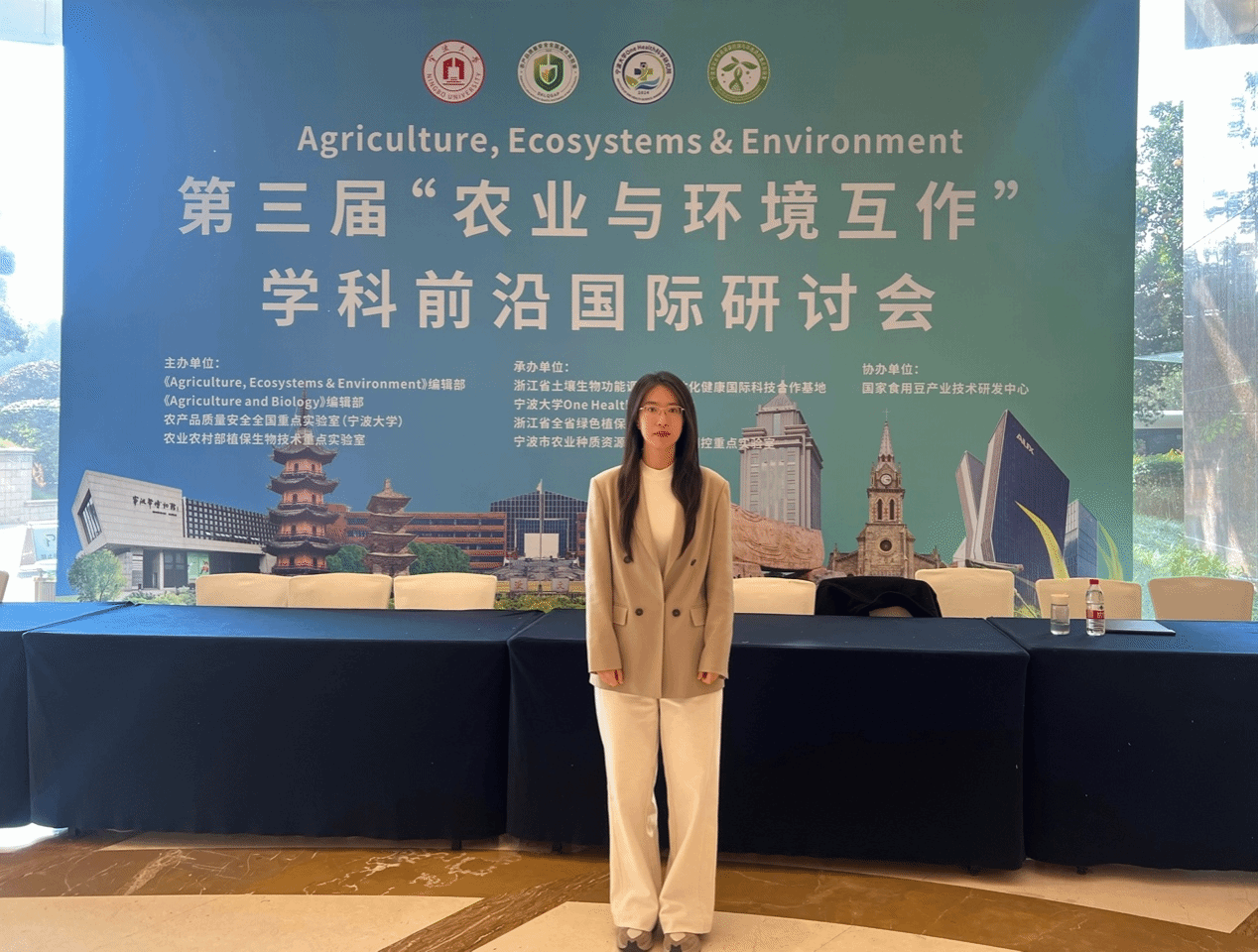 11月21日-23日,第三届“农业与环境互作”学科前沿国际研讨会在浙江宁波顺利召开。本次会议由《Agriculture, Ecosystems & Environment》编辑部、农产品质量安全全国重点实验室(宁波大学)及农业农村部植保生物技术重点实验室联合主办,旨在促进农业生态与环境研究领域学者之间的交叉融合与学术创新,进一步提升我国在该领域的国际学术影响力。我院张薇博士参会并与专家展开了深入交流与探讨。