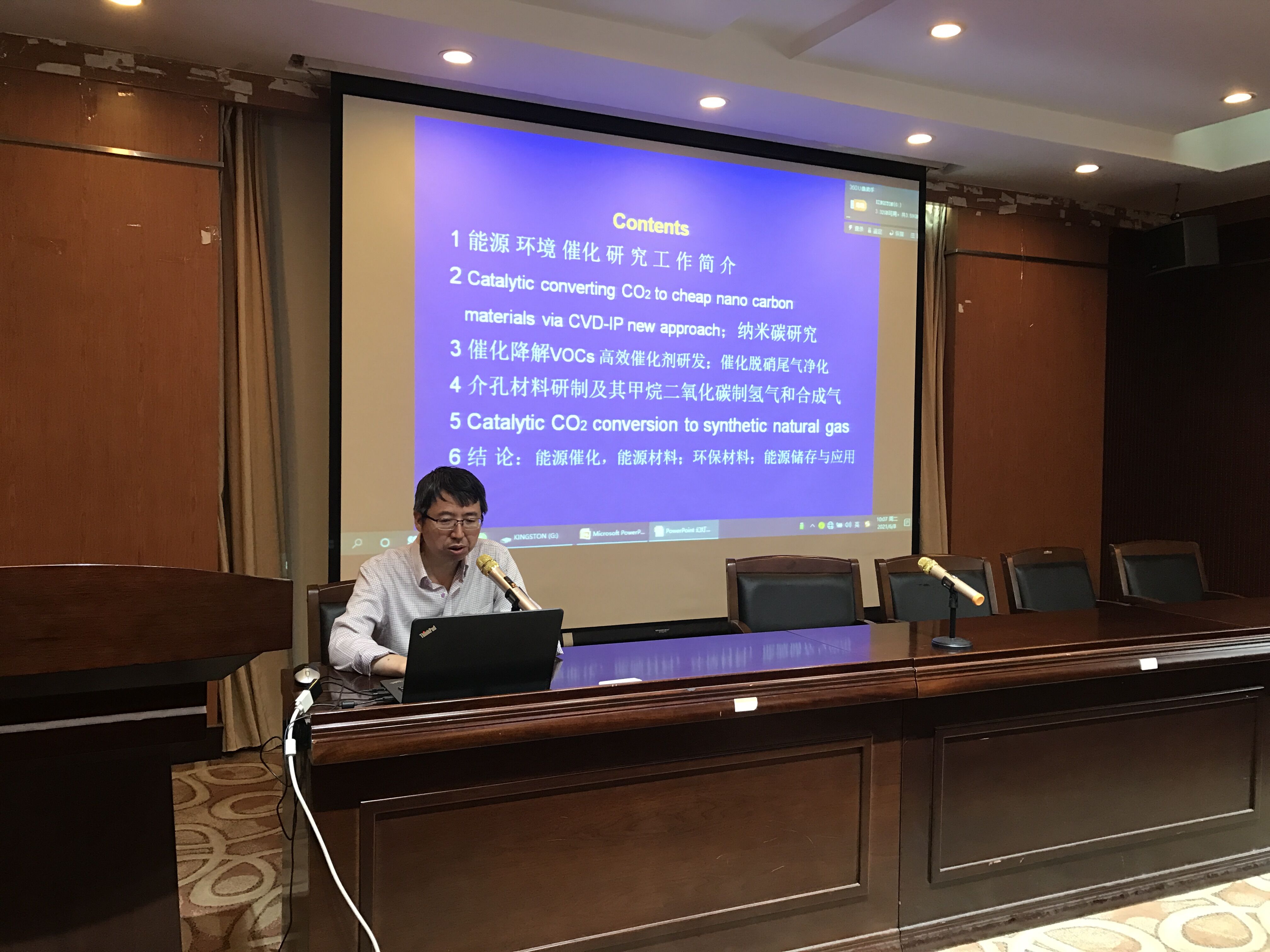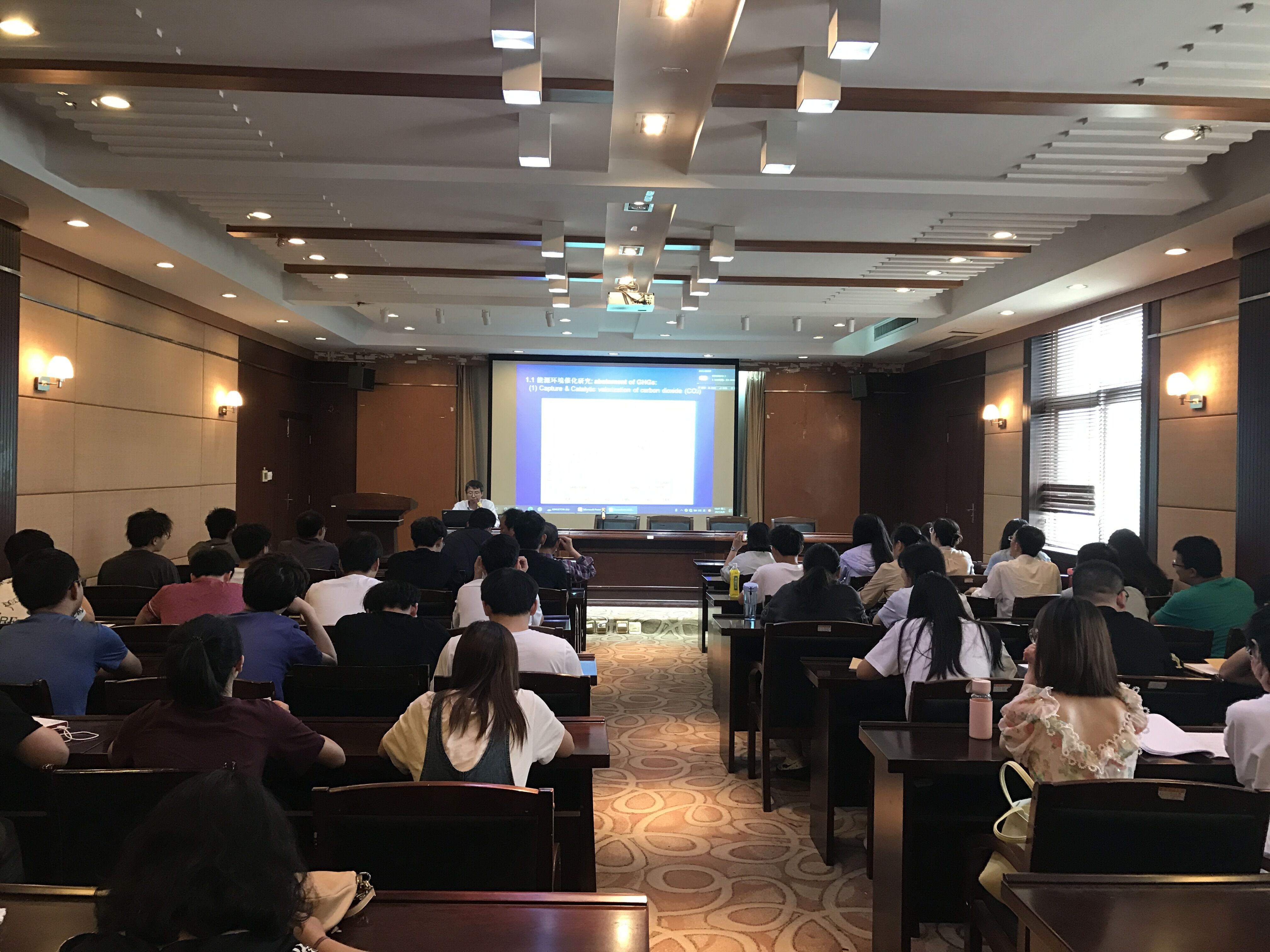 储教授详细介绍了催化降解VOCs高效催化剂用于催化脱硝尾气净化的研发,介孔材料研制及其甲烷二氧化碳制氢气和合成气体等方面具体工作,从能源催化、能源材料、环保材料和能源储存与应用等领域介绍了其目前的研究进展,并与在座各位老师进行了深入的探讨。