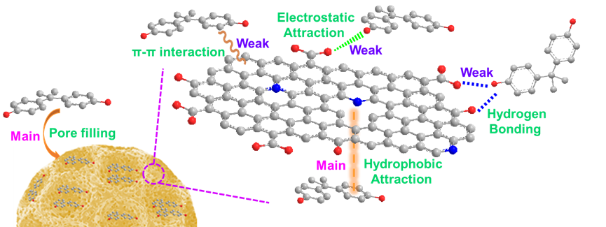 图1秸秆基分级多孔生物炭吸附水中双酚A机理图