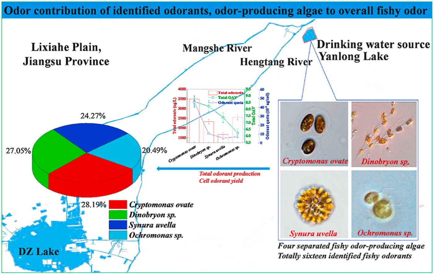 本研究结合实际水源中检出的4种产嗅藻,识别其致嗅物质、分析物质含量,并评价了致嗅物质、产嗅藻对水源整体嗅味的贡献。研究结果加深了对水源嗅味的认识,将为水源嗅味的管理和控制提供一定的理论依据。