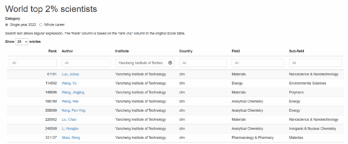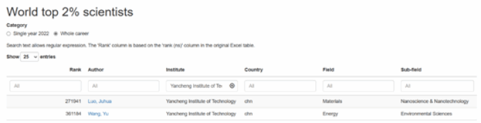 近日,美国斯坦福大学和爱思唯尔数据库(Elsevier Data Repository)共同发布了2023年度全球前2%顶尖科学家榜单(World’s Top 2% Scientists 2023)。该榜单分两个排行榜,“2023年度科学影响力排行榜”集中于科学家上一年度的学术影响力,“终身科学影响力排行榜(1960-2023)”统计科学家职业生涯期间的综合影响表现,我院王羽博士均入选。