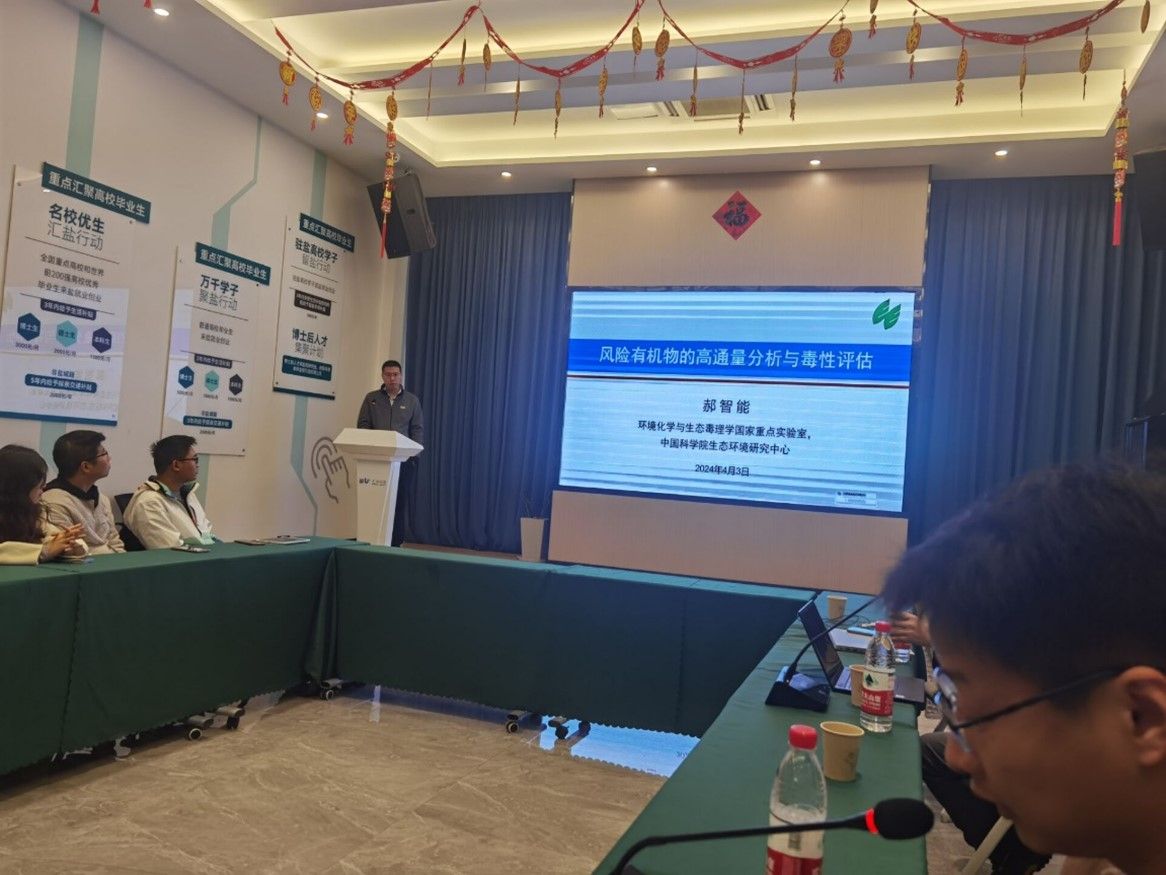 郝智能副研究员做了题为“风险有机物的高通量分析与毒性评估研究”的学术报告。郝教授在报告中,分享了水中风险有机物的识别与毒性评估,特别是冰冻水体中溶解性有机物非生物卤化的产物分析。在师生交流环节中,李璇博士指出,郝教授建立了多种新兴污染物的检测方法,能够为盐城地区供水系统的风险有机物识别提供理论与技术指导。