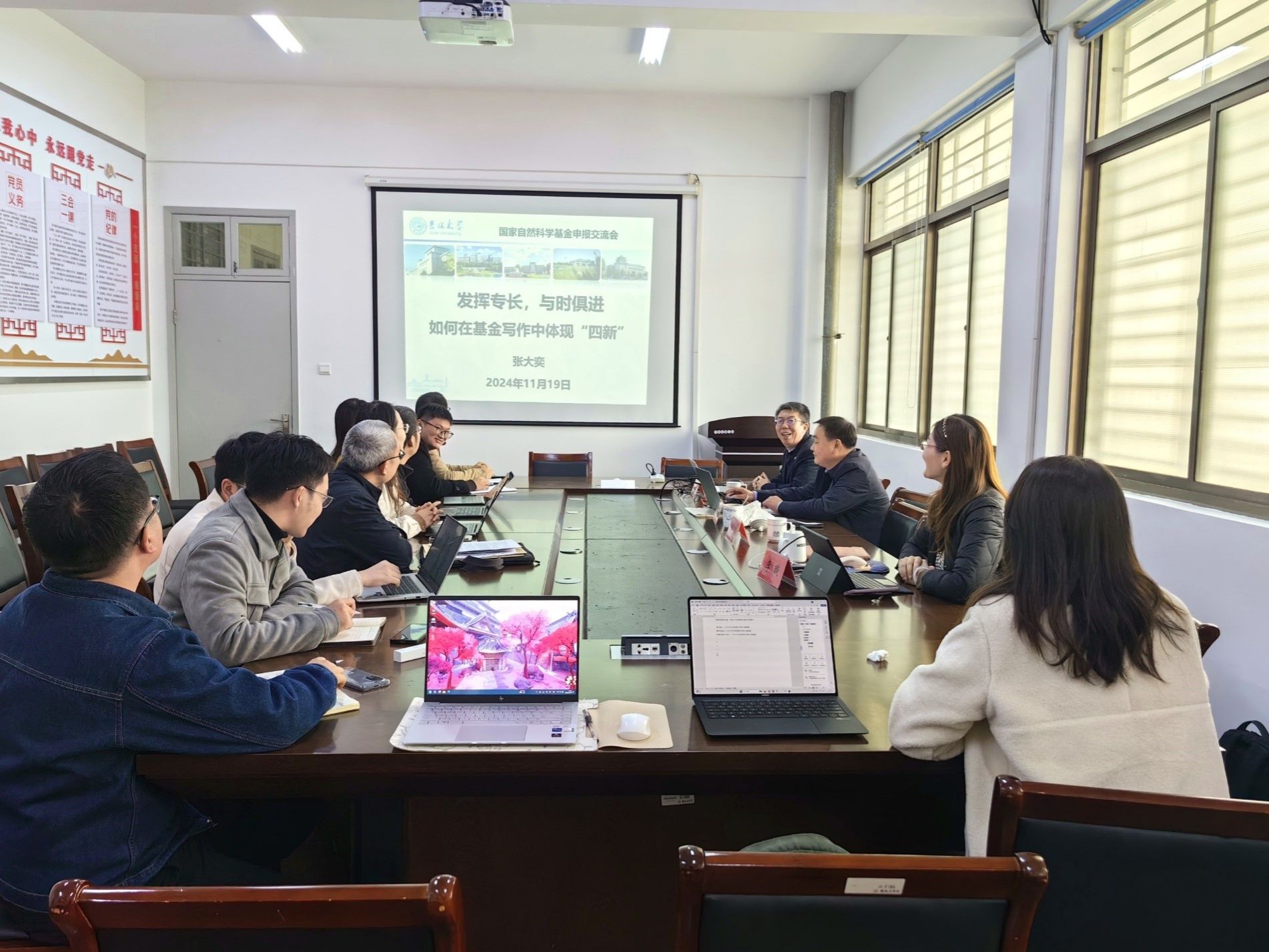 在随后的评审环节,各申报教师从立项依据、研究内容、研究目标、科学问题和创新点等方面进行了汇报,张大奕对每一项申报书都作了认真点评,重点对选题的创新性、科学问题的提炼、研究内容的逻辑性、研究方案的可行性等方面提出建议。青年教师认真听取专家意见,并对一些关键问题提出疑问。本次评审会对学院基金申报工作意义重大,受益匪浅。