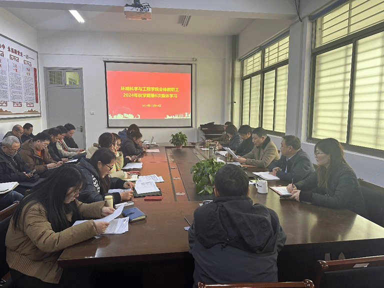 12月4日,在北校区学院会议室,环境学院召开2024年秋学期第六次教职工政治理论学习会。党总支书记孟鑫主持,院长陈天明、副院长杨百忍、李璇、党总支副书记王丽坤,全体教职工参加。