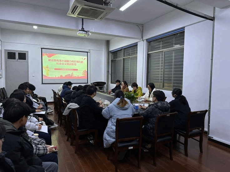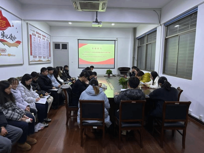 沈丹带领同学们学习了习近平总书记在中央经济工作会议上的重要讲话精神、习近平总书记在《求是》杂志上发表的《发展新质生产力是推动高质量发展的内在要求和重要着力点》重要文章精神。