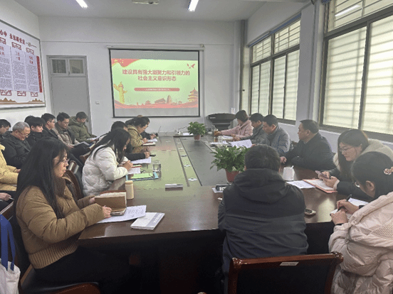 王丽坤领学《习近平文化思想学习纲要》中《建设具有强大凝聚力和引领力的社会主义意识形态》章节,她围绕“意识形态工作是为国家立心、为民族立魂的工作”“牢牢掌握意识形态工作领导权”“坚持马克思主义在意识形态领域指导地位的根本制度”等三个方面,结合意识形态专项监督检查整改工作,对如何做好学院意识形态领域的安全稳定进行讲解。她指出,全院上下要进一步提高对意识形态工作极端重要性的认识,巩固拓展党纪学习教育成果,压实整改责任,加强意识形态阵地建设和管理,为学院各项事业的稳步发展提供有力保障。