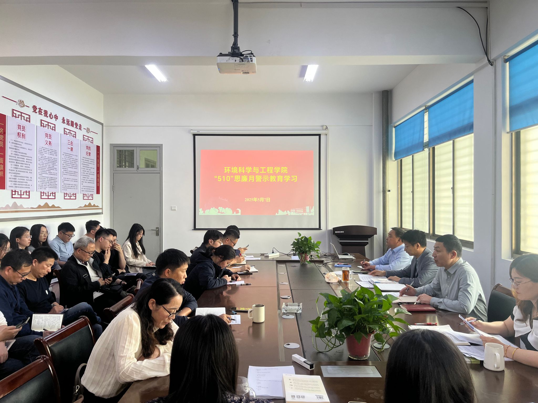 为深入学习贯彻习近平总书记关于全面加强党的纪律建设的重要论述、关于加强党的作风建设的重要论述和中央八项规定,营造风清气正、健康向上的校园文化环境,5月7日下午,环境学院党总支在学院会议室组织开展“510”思廉月警示教育系列学习。本次学习由学院党总支书记孟鑫主持,院长陈天明、副院长杨百忍、李璇出席,全体教职工参加。