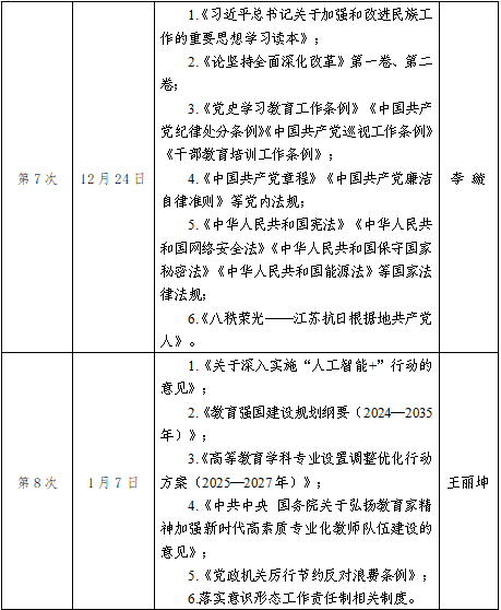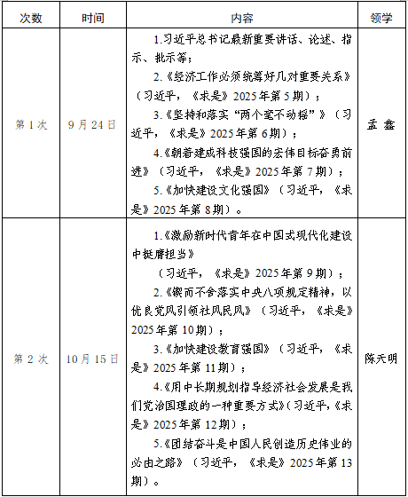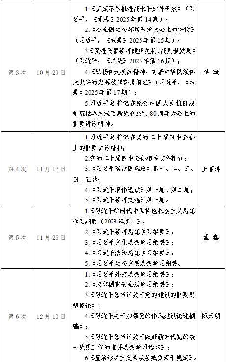 2025年秋学期师生政治理论学习主要围绕以下内容开展,根据实际情况和工作需要,调整、增补相关学习内容。
