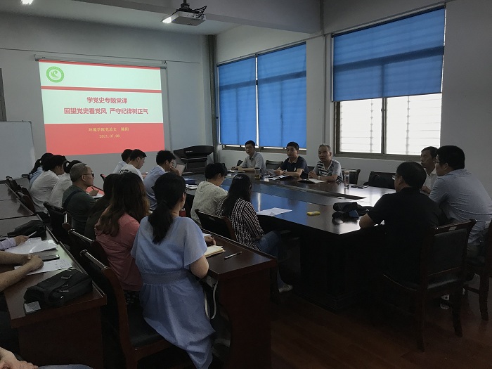 7月8日下午,环境科学与工程学院党总支在学院会议室召开党史学习教育专题党课。全体教工党员参加,校党委党史学习教育第四巡学督学指导组成员薛俊义科长列席指导。