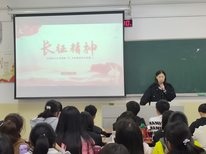 学生党员们分组向新生宣讲了红船精神、苏区精神、长征精神、“两弹一星”精神、雷锋精神、塞罕坝精神、抗疫精神等的科学内涵、时代价值,重点从学生角度出发,讲解了弘扬伟大精神等具体措施。