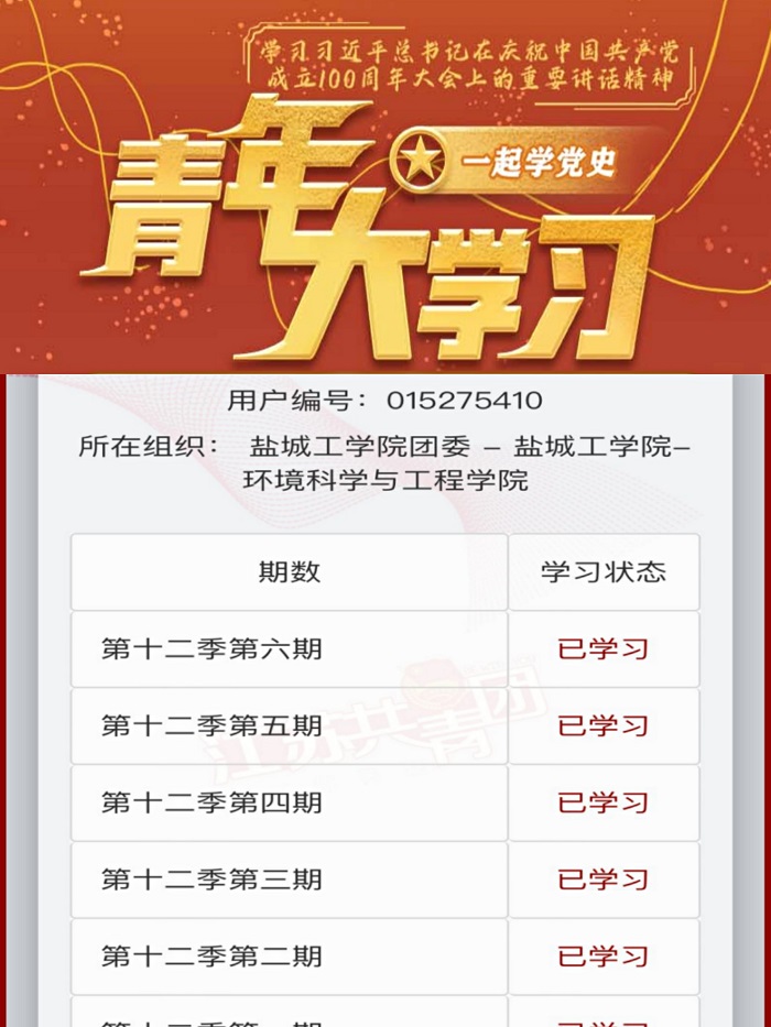 环境科学与工程学院积极响应团中央号召,认真组织大学生积极参加青年大学习,深入系统学习中国共产党历史。