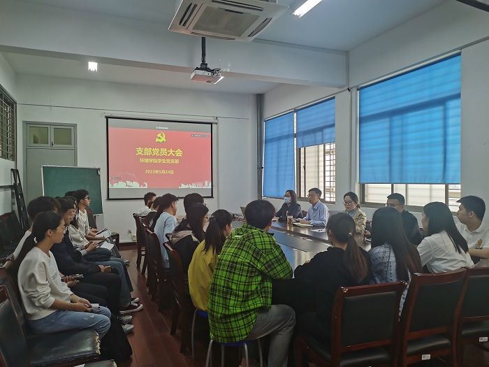 5月24日,环境学院学生党支部于学院会议室召开支部党员大会,讨论接收2023年春学期发展党员及2022年春学期预备党员转正答辩等事宜。大会由学生党支部书记沈丹主持,学生支部全体党员线上线下40余人参会。