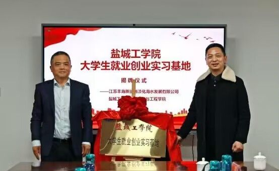 最后,双方分别签订了产学研合作协议和党建联盟协议,陈阳书记与姜德宏董事长一起为盐城工学院大学生就业创业实习基地进行揭牌。