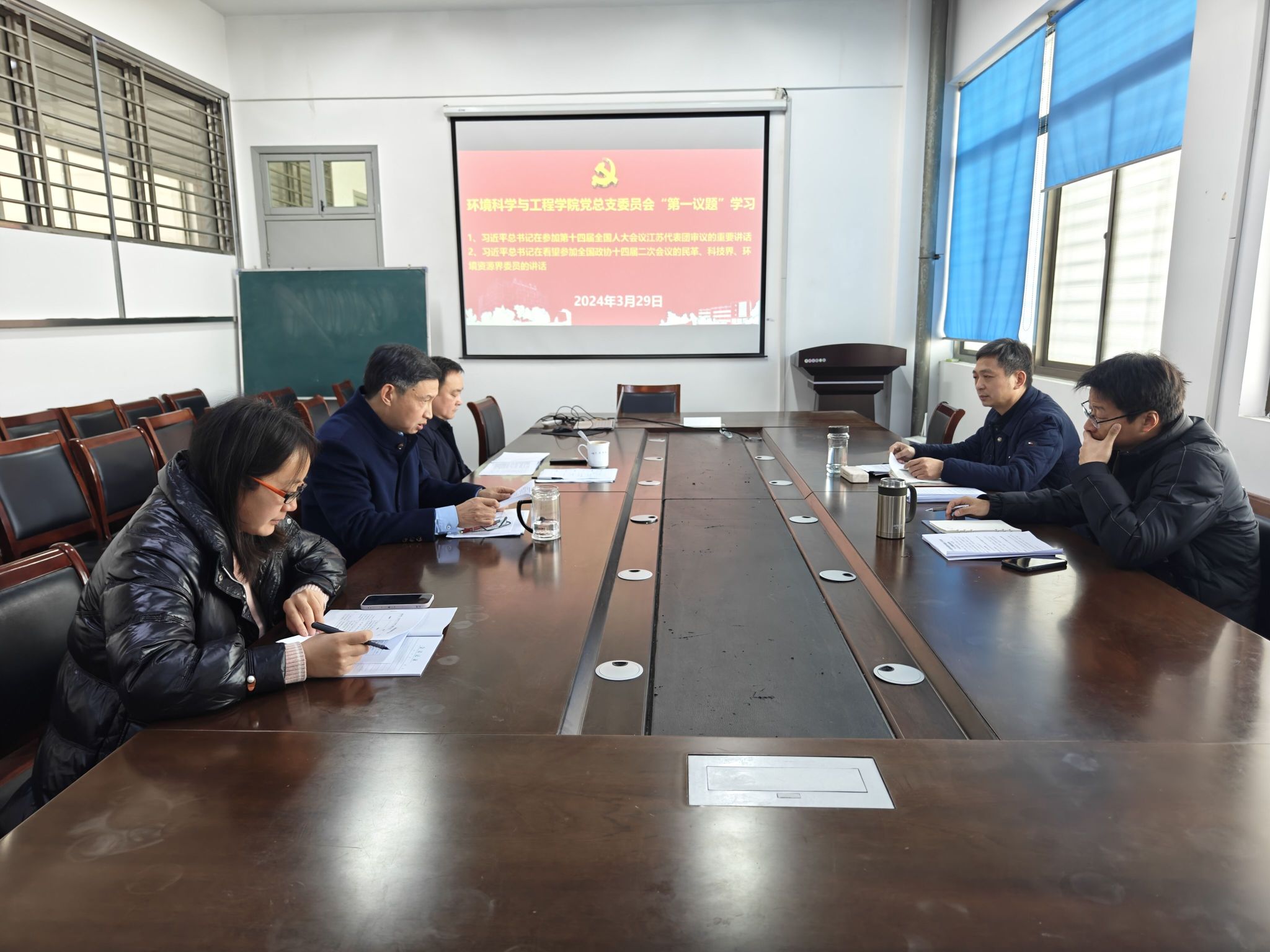 3月29日上午,在北校区环境学院会议室,环境学院党总支委员会“第一议题”学习习近平总书记在参加十四届全国人大二次会议江苏代表团审议时、在看望参加政协会议的民革科技界环境资源界委员时的重要讲话精神。会议由学院党总支书记陈阳主持,总支全体委员参加。