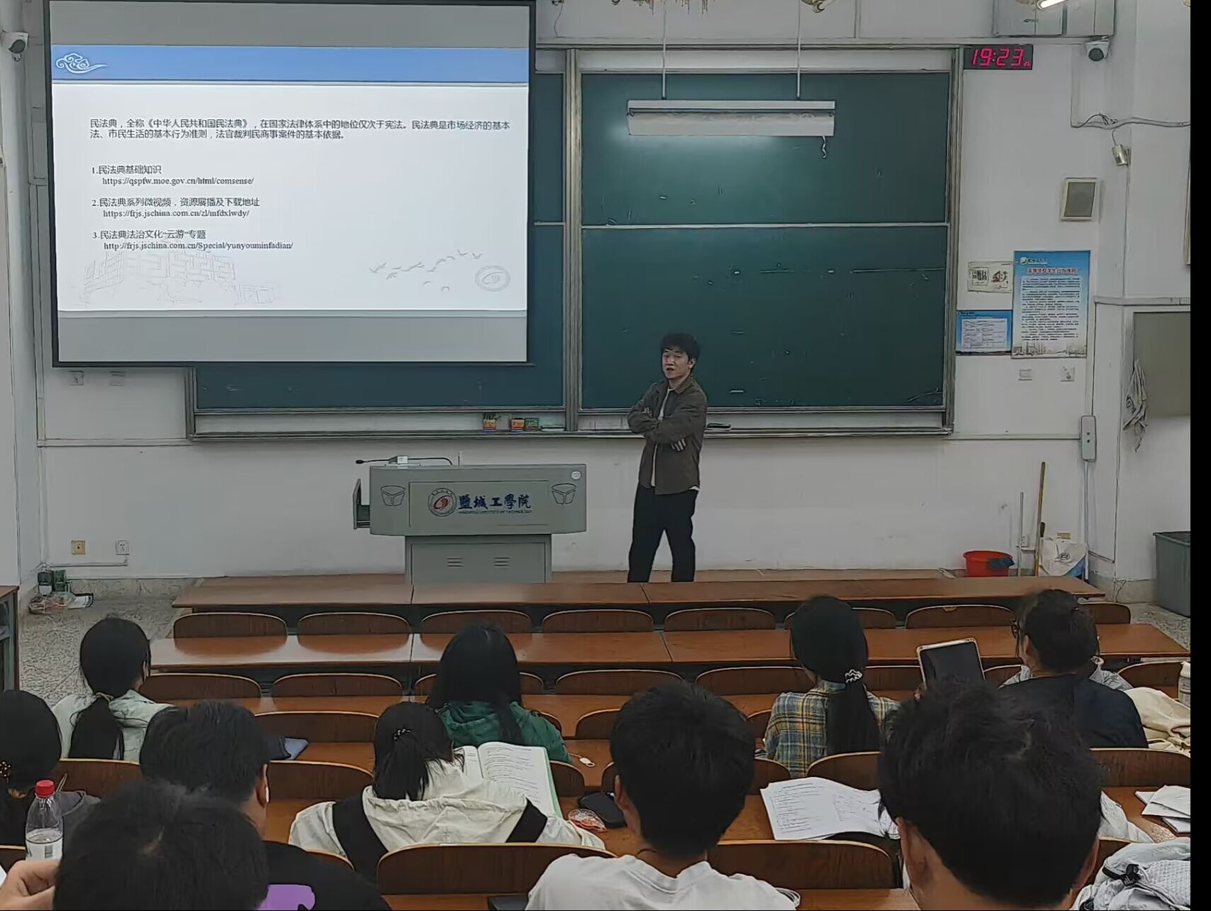 5月16日,学院在知达楼教室开展“美好生活·法典相伴”第四届“民法典宣传月”主题班会,辅导员结合生动形象的案例、视频帮助同学们理解《民法典》内蕴含着的平等、自愿、公平、诚信等基本原则与基本要求,让全体同学认识到《民法典》与我们的日常生活密切相关,是保护自身权益的有力武器。