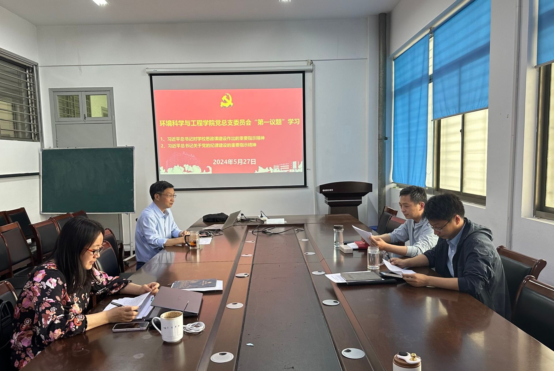 5月27日上午,环境学院党总支委员会以“第一议题”形式,认真学习习近平总书记对学校思政课建设、关于党的纪律建设作出的重要指示精神。会议由党总支书陈阳主持,学院党总支委员参加。