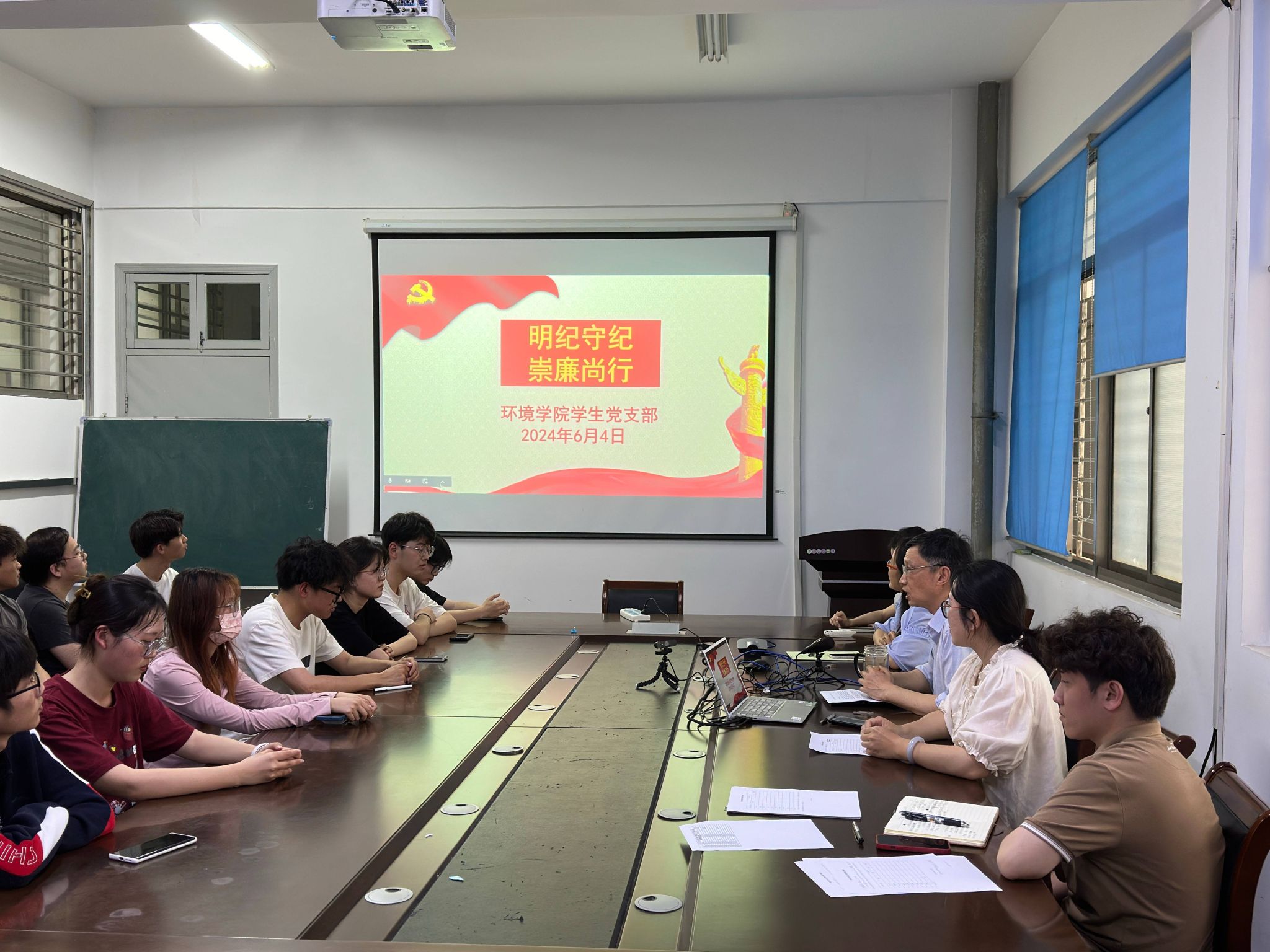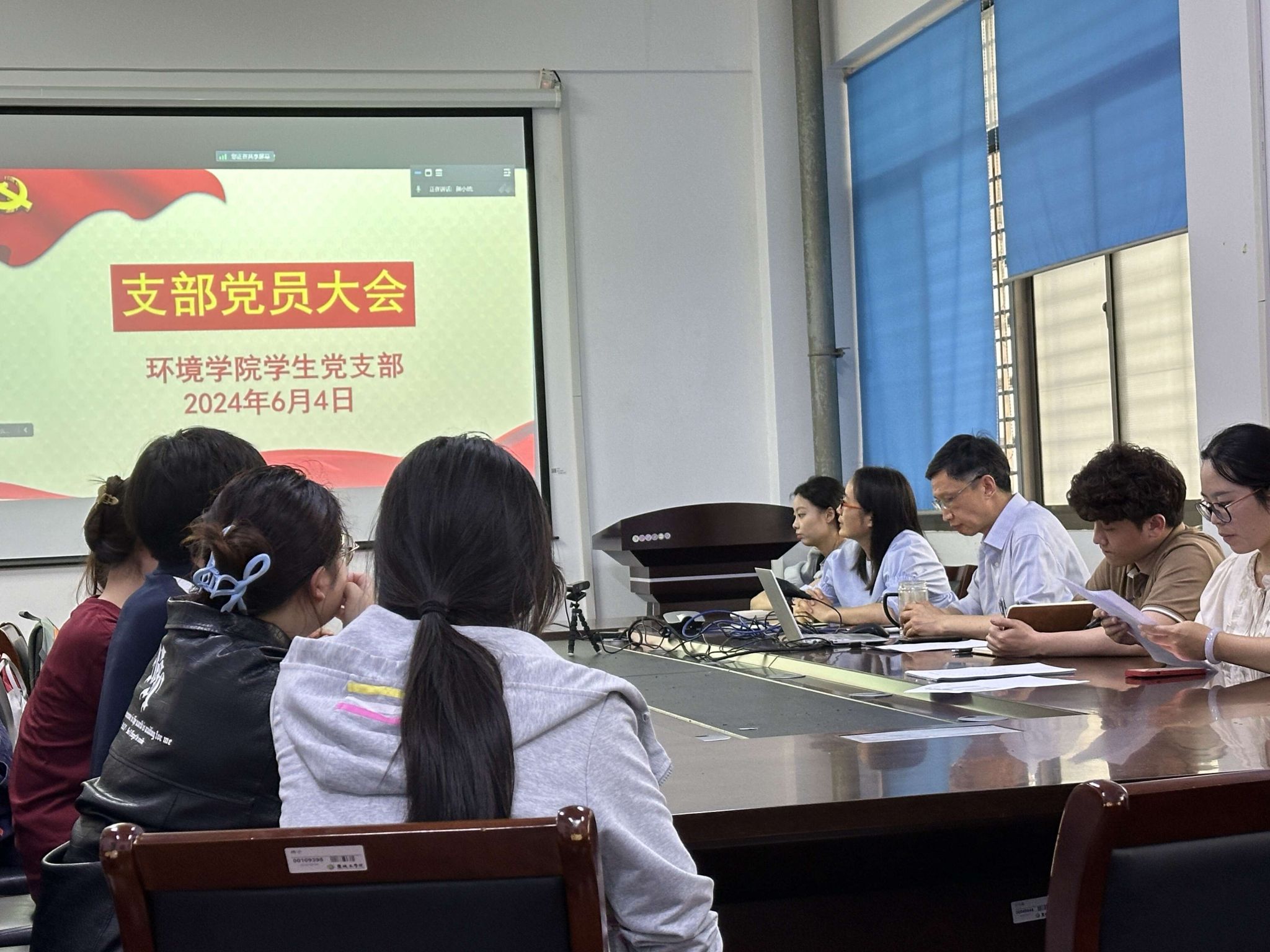 6月4日,环境学院学生党支部于学院会议室召开支部党员大会,讨论接收2024年春学期发展党员及2023年春学期预备党员转正答辩申请等事宜。大会由学生党支部书记沈丹主持,学生支部全体党员线上线下参会。