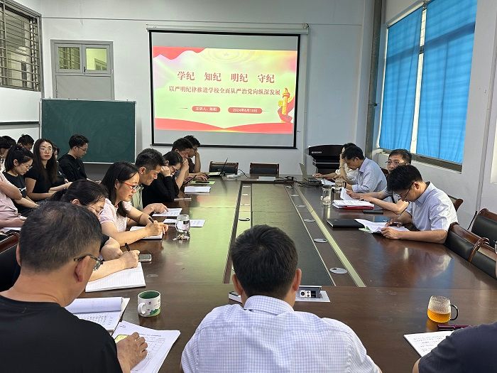 为深入贯彻党的二十大精神,加强党的纪律建设,6月19日下午,在北校区大学生活动中心三楼环境学院会议室,学院召开党纪教育专题党课,党总支书记陈阳以“学纪、知纪、明纪、守纪----以严明纪律推进学校全面从严治党向纵深发展”为题,带领全院教职工展开学习。
