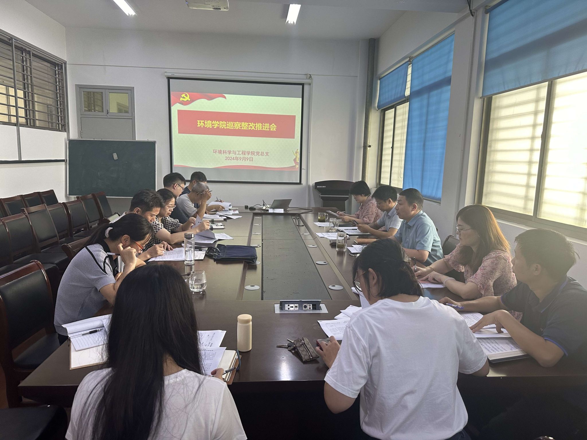 为进一步推进巡察整改工作落到实处、见到实效,9月9日,环境学院召开巡察整改工作推进会,院长陈天明、党总支书记孟鑫、副院长李璇、党总支副书记王丽坤、各系(室)主任、各党支部书记参加会议。