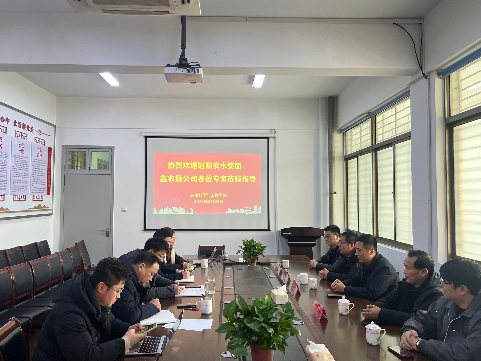 2月25日下午,江苏鑫农源水处理设备有限公司副董事长戴健、副总经理吴刚、行政总监孙前生、工程部部长杨晔一行到访环境学院开展调研交流。环境学院院长陈天明,党总支书记孟鑫,副院长杨百忍、李璇等陪同调研。双方聚焦人才联合培养、科技成果转化、职业技能提升三大方向达成合作共识,旨在探索产学研协同发展的新模式,为区域环保产业注入新动能。