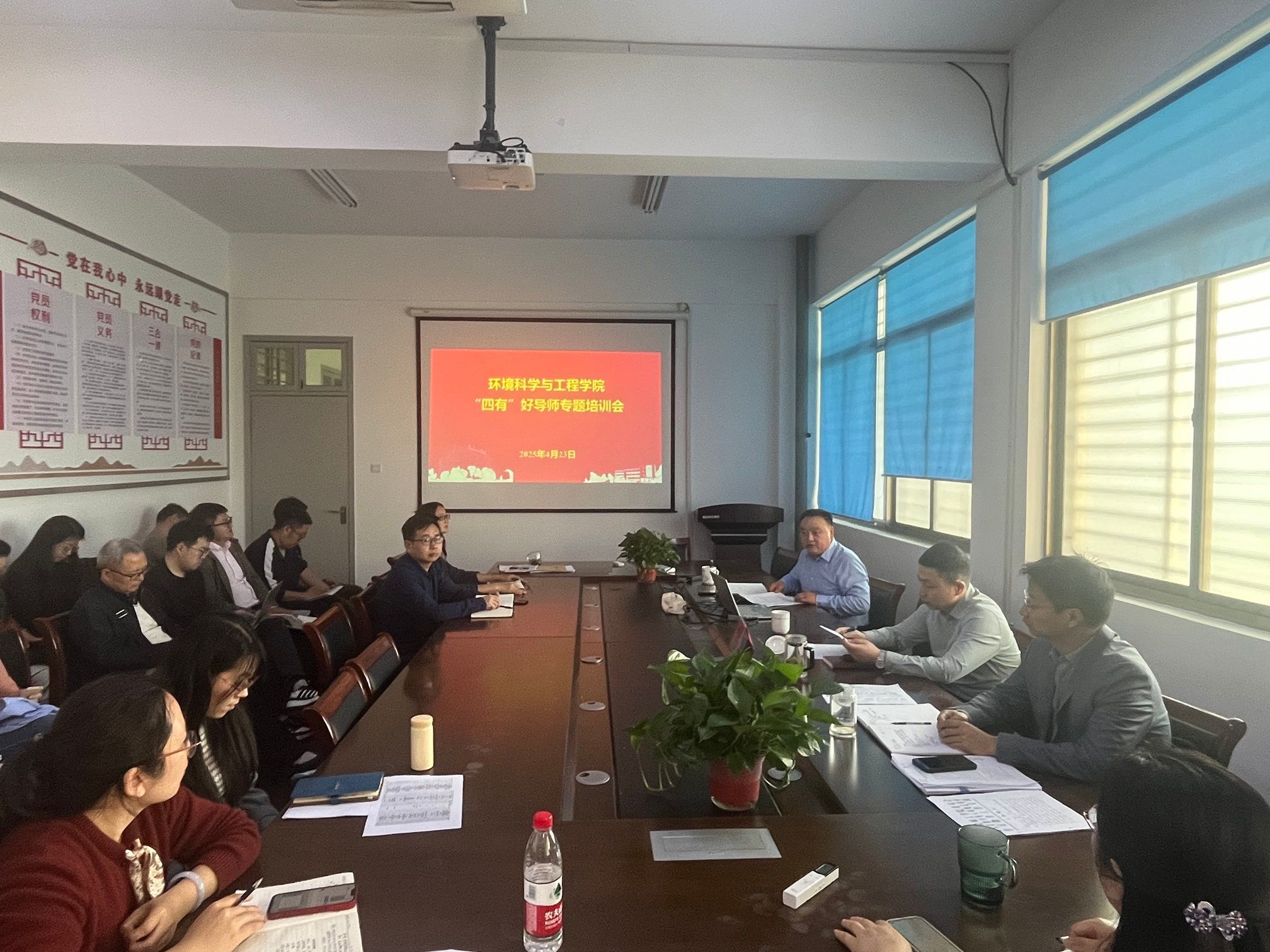 为全面落实立德树人根本任务,提高研究生培养质量,加强环境学院硕士研究生导师队伍建设,4月23日下午,环境学院在会议室举办2025年度“四有导师”专题培训会。会议由环境学院院长陈天明主持,学院领导班子出席会议,全院研究生导师参加会议。