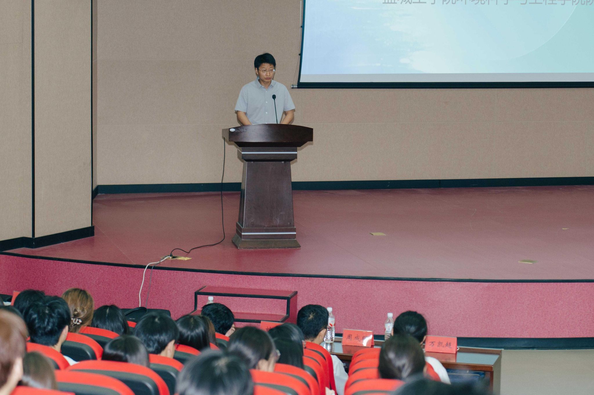 表彰大会伊始,与会人员在会场入口的蓝色主题签名墙上郑重签名承诺,并领取了海洋日纪念徽章与环保手册。盐城市自然资源和规划局副局长刘月仲、盐城工学院环境学院院长陈天明先后致辞,强调了海洋保护工作的极端重要性与紧迫性,并分享了环境学院在海洋生态修复领域的最新成果,为未来行动指明了方向。颁奖环节中,与会嘉宾为此次在海洋生态文明宣传教育活动系列活动中表现优异的个人颁发了获奖证书及奖品。其中,来自盐城工学院的王帅、何钰及来自盐城师范学院的冯明宇三位同学,斩获一等奖。
