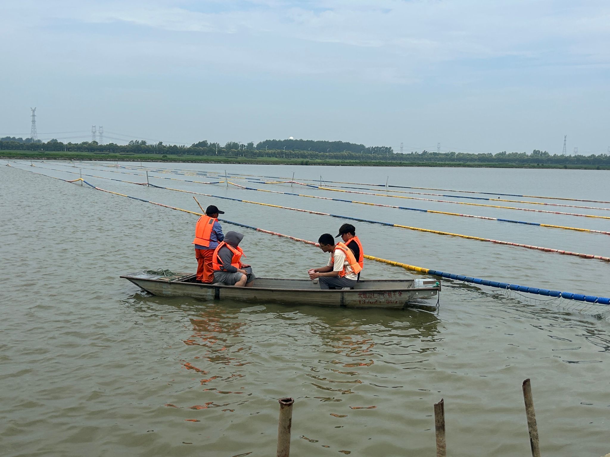 在盐城市水务集团原水公司生态科主任王玲的陪同下,实践团成员体验了3342亩湖区的广阔和湖水的波光粼粼,近距离接触了取水口、湖内各个功能单元。