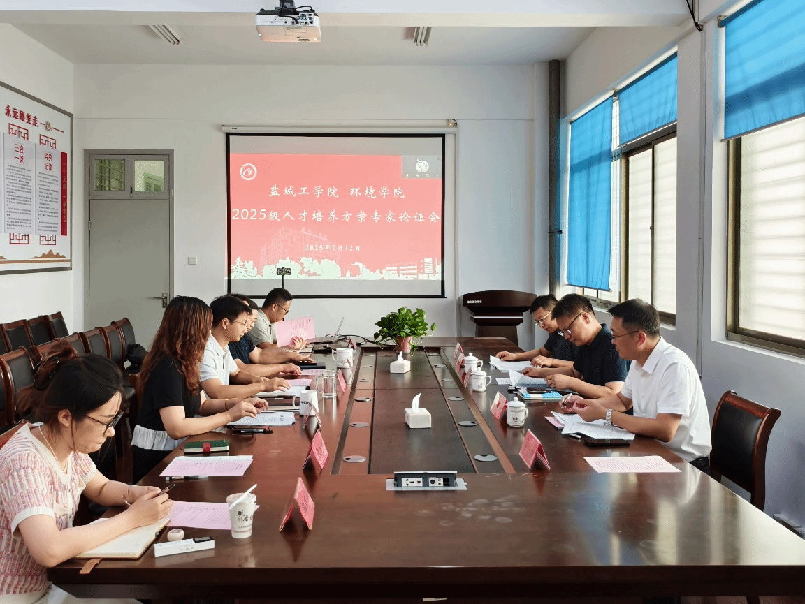 7月12日上午,学院组织召开2025级本科人才培养方案专家论证会,特邀教育部环境科学与工程教学指导委员会委员、江南大学张光生教授,苏州科技大学环境科学与工程学院院长李大鹏教授,盐城市水务集团有限公司党委委员、副总经理李大胜,江苏黄海生态环境科技有限公司董事长张元峰,江苏中创清源科技有限公司董事长李兵等专家出席。论证会由学院副院长李璇主持,院长陈天明、副院长杨百忍、教务科长张红梅及各专业系负责人参加会议。