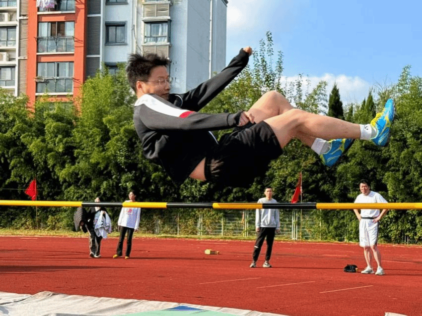 教师组中,院长陈天明以实力摘得男子乙组跳高第1名,周峰老师在男子乙组100米、陈超然老师在女子甲组200米赛场上均获得第4名的好成绩。