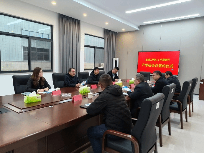 卞桃华对丁成一行的到来表示热烈欢迎,并介绍了盐城市水务集团业务向智慧化、绿色化转型的发展规划。他表示,希望未来与盐工在科研平台建设和重大项目申报等方面展开进一步交流与合作。李大胜详细介绍了华晟联科的发展历程、核心业务布局及未来战略规划,以及在校企联合培养、科研攻关等产学研合作需求。