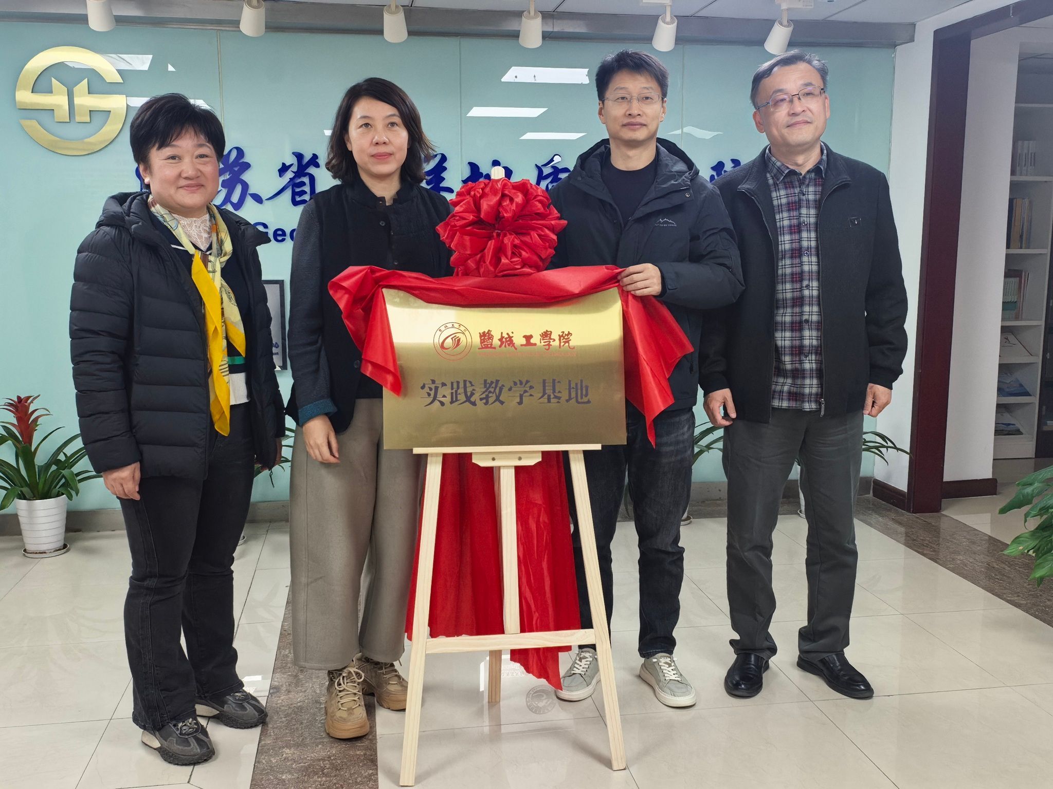 在双方代表共同见证下,陈天明与姜夏烨分别代表各自单位签署了合作框架协议及实践教学基地共建协议。陈天明院长同时向江苏省海洋地质调查院授予“盐城工学院实践教学基地”铜牌,标志着双方在学生实习实践平台建设方面迈出关键一步。