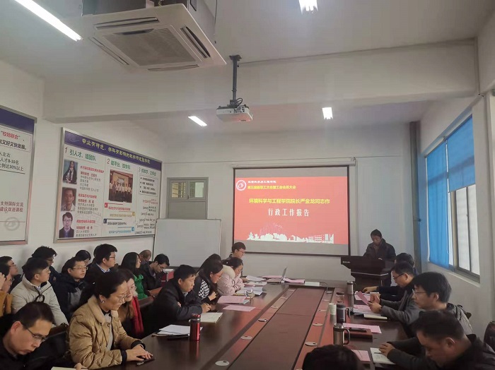 12月22日下午,学院在学院会议室召开第三届教职工暨工会会员大会。院长严金龙作工作报告,分工会主席周政作分工会工作报告,大会选举产生了学校第五届教职工代表大会暨工会会员代表大会代表、环境学院教职工大会执行委员会和分工会委员会委员,大会由学院党总支书记陈阳主持。