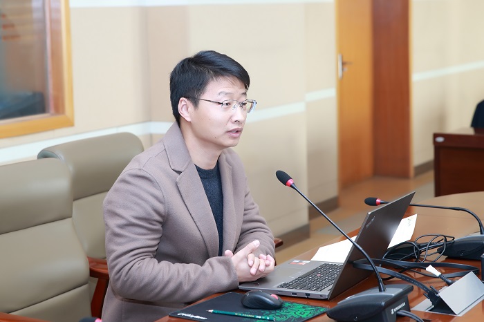 王路明对黄克蓉一行表示热烈欢迎,并从学校历史、学科发展、科学研究、社会服务等几方面介绍了我校办学情况。余新明介绍了江苏省有色金属华东地质勘查局的发展历程和服务地方经济社会发展的成果。闫玉茹介绍了海洋地质调查研究院的组织结构、社会服务、科研成果等。环境学院副院长陈天明汇报环境学院成立10余年取得的学科科研成绩。