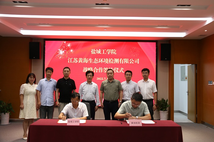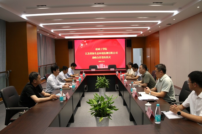 7月14日下午,在江苏黄海金融控股集团有限公司,我校与江苏黄海生态环境检测有限公司签订战略合作协议。江苏黄海金融控股集团有限公司集团党委委员、副总经理李名渊,我校党委常委、副校长王资生出席。江苏黄海生态环境检测有限公司总经理张元峰、副总经理李伟、工程技术研究院部长张辉、实验中心主任殷春涛,我校环境科学与工程学院院长严金龙、党总支书记陈阳及环境学院教师代表等参加签约仪式。