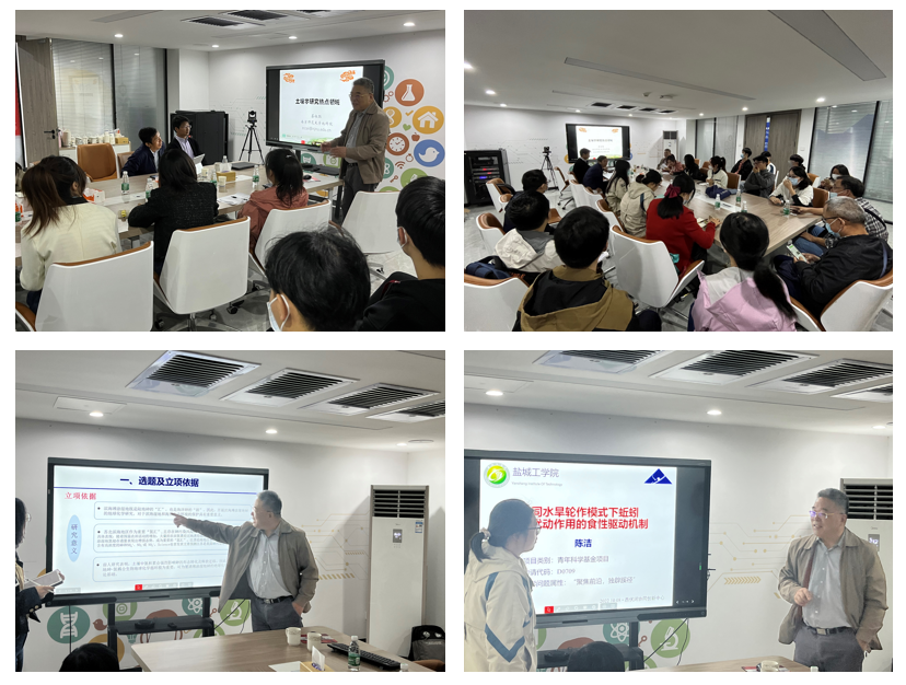 蔡祖聪教授对我校在学科发展和服务地方方面做出的工作表示了肯定,并做了题为“土壤学研究热点领域”的学术报告,教师和研究生踊跃发言、积极交流,普遍感到获益良多,扩宽了研究视野。报告结束后,蔡祖聪教授与我院教师就国家基金申报工作进行交流,我院青年教师薛利利、陈洁和杨亚冬等汇报了自己的基金撰写情况并跟蔡教授进行了交流。