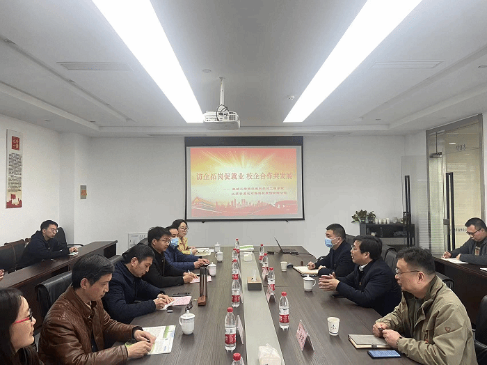 为深入贯彻落实党的二十大精神,进一步调研掌握市场需求、促进党建联盟共建,提高人才培养质量,加强学生就业实践与地方经济社会发展的紧密联系,3月24日下午,环境学院党总支书记陈阳、副院长(主持工作)陈天明、副书记周政、副院长杨百忍带队赴江苏科易达环保科技股份有限公司开展党建联盟共建暨“访企拓岗促就业”专项行动,学工办、分团委负责同志、2023届毕业生代表随行参加。江苏科易达环保科技股份有限公司董事长、总经理吴克华、江苏科易达环保科技股份有限公司党支部书记单学凯、副书记周飞及十余名在职盐工校友参加座谈交流。