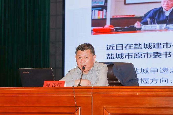 吴其江主任从世界自然遗产地的分类和全球及中国的分布情况引出盐城市获批世界自然遗产地的重要性,盐城世界自然遗产是目前中国第一块、全球第二块潮间带世界自然遗产,也标志着我国世界自然遗产从陆地走向海洋“零”的突破。紧接着回忆了盐城市申遗的全过程,从有申遗的想法,到中间的筹备工作的艰辛,再到论证的挫折,到最后惊喜地成功,整个过程跌倒起伏,让在场的师生感同身受,倍感鼓舞。最后,吴主任讲述了盐城世界遗产地给我们的城市发展和人与自然和谐共处带来了突出的普遍价值。