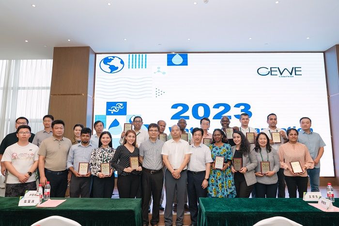 会后,王资生、李晓东、栾富波分别向国际学员颁发“2023年中国科学院-发展中国家科学院水与卫生培训班”结业证书,并合影。