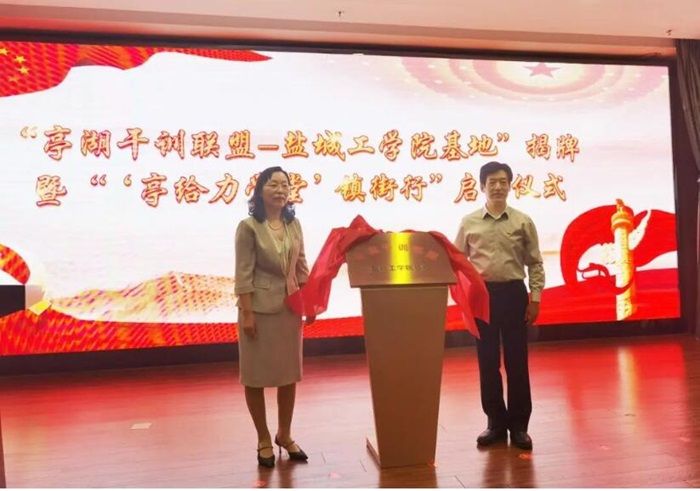 6月11日上午,亭湖区在大洋街道举办“亭湖干训联盟-盐城工学院基地”揭牌暨“‘亭给力学堂’镇街行”启动仪式。我校党委常委、副校长王资生,亭湖区委常委、组织部部长徐莉,环境学院党总支书记陈阳,学院副院长、亭湖区政协副主席杨百忍等出席本次活动。亭湖区委组织部副部长、“两新”工委书记、党建办主任范国存主持。