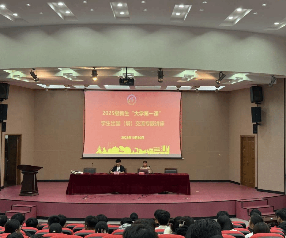 10月31日晚上,环境学院在北校区五四报告厅举办“大学第一课”出国(境)交流专题讲座。邀请国际交流与合作处李景玉老师作专题讲授。讲座由新生辅导员王翔主持,全体2025级新生共计200人聆听了讲座。