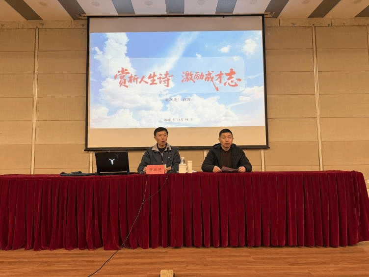 11月20日下午,环境学院在北校区化工楼报告厅举办专题报告会,邀请原校党委常委、副校长、校关工委银龄宣讲团专家董跃进教授,作题为《赏析人生诗,激励成才志》的专题报告。学院党委书记孟鑫主持。学工办主任沈丹、新生辅导员王翔、翟平,2025级全体新生参加。