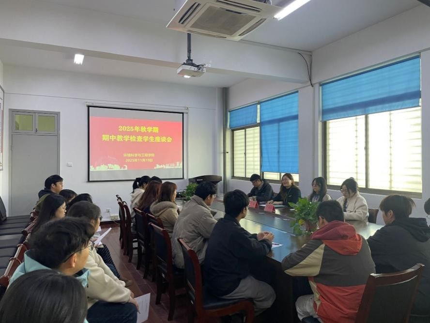 11月19日,环境学院在会议室召开2025年秋学期期中教学检查学生座谈会。学院副院长李璇,环境工程系主任郭雪洁、副主任杨亚东,环保设备工程系主任张麓岩,学工办主任沈丹出席,各专业学生代表20余人参加座谈。