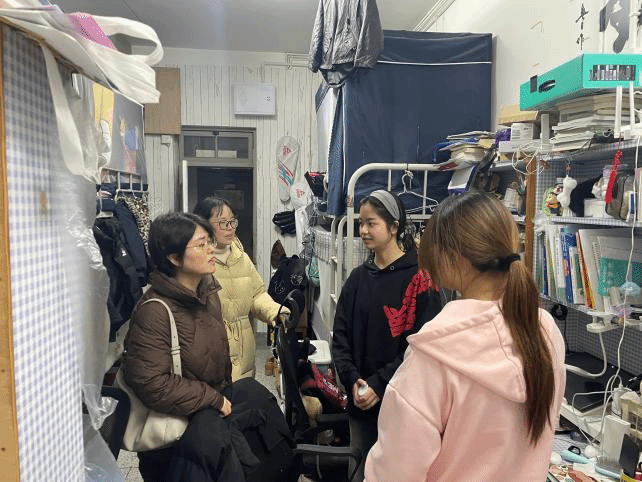 王丽坤一行先后检查了2号楼、12号楼、7号楼学生宿舍,与同学们面对面亲切交流,详细询问假期生活、返校适应情况与新学期规划,提醒同学们要尽快从假期模式切换至学习状态,以充沛的精力和积极的心态投入新学期的学习生活。嘱托毕业生认真备战复试,把握春招关键期,积极投递简历,理性规划职业方向。王丽坤一行还对宿舍卫生、用电安全、消防隐患等进行细致检查,提醒同学们遵守宿舍管理规定,杜绝违规电器,共同营造安全、文明、整洁的住宿环境。