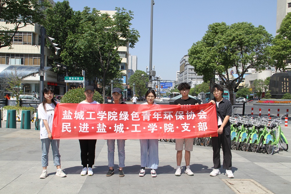 2021年6月5日,在环境学院副院长杨百忍的带领下,7名绿色青年环保协会志愿者在大铜马广场进行“世界环境日”、“盐城黄海湿地”和“绿色发展,你我共创”宣传倡议活动。