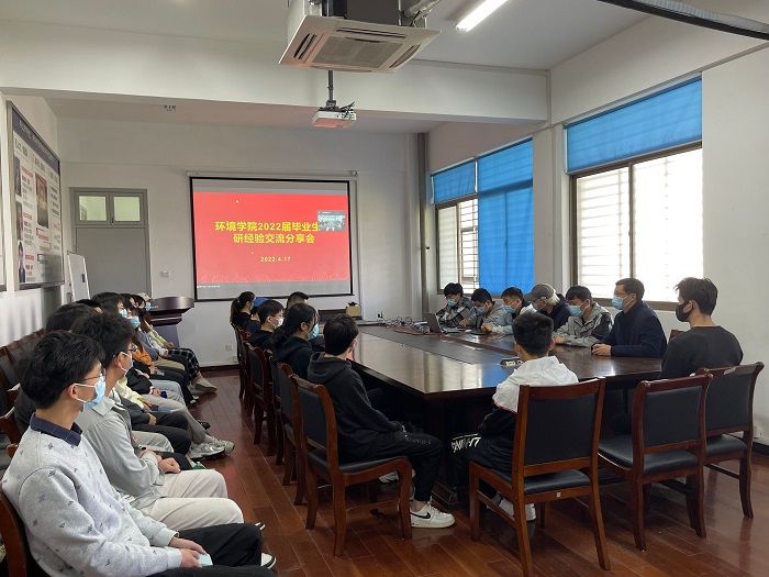 2022年4月17日上午,环境学院在学院会议室召开2022届毕业生考研经验交流会,会议由19级辅导员陈超然主持,5位考研上岸的学生主讲,学工办主任兼18级辅导员沈丹、19级学生参加。党总支副书记周政到会并讲话。
