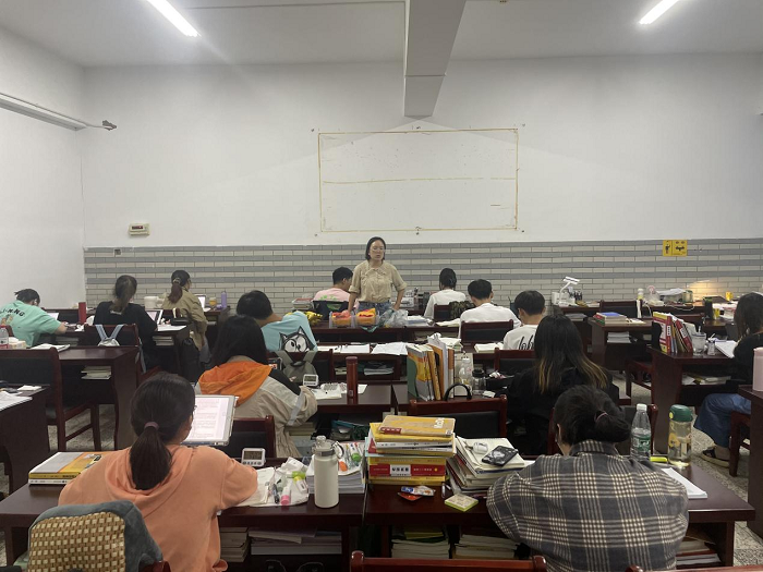 会后,辅导员到教室慰问考研学生,了解复习进度,解决实际问题。