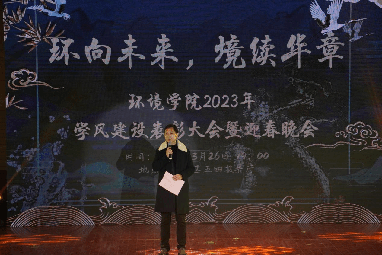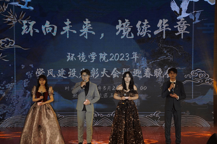 3月26日晚,环境学院在建军东路校区五四报告厅举办“环向未来,境续华章”2023年学风建设表彰大会暨迎春晚会。环境学院党总支书记陈阳、副院长杨百忍、党总支副书记周政,师生代表及2022全体新生400余人参加。