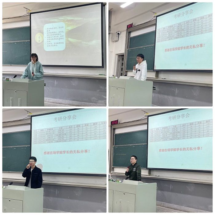 周政对环境学院历年来考研录取情况进行介绍,他指出,“奋斗是青春最亮丽的底色”勉励20级同学奋战考研,脚踏实地,摒弃不切实际的想法,坚持到底,最终实现个人理想。随后,2023届考研上岸毕业生王泽昊、黄雷、何俊、吴辰晔、韩振洋、沙泳浩依次就自身在考研过程中院校及专业选择、专业课复习方法、注意事项等内容分享给在座大三同学。考研需要高度自律,及时调整心态,稳扎稳打付出努力一定能收获胜利果实。