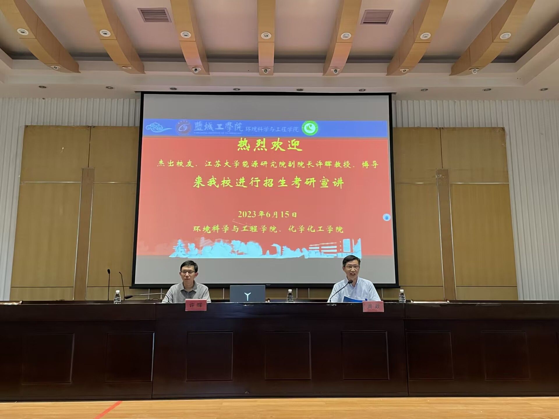 6月16日下午,江苏大学能源研究院党总支副书记、副院长何晓萍,副院长许晖一行5人来我校为环境学院、化工学院做研究生招生宣传,宣讲会在图书馆报告厅举行。会议由环境学院党总支副书记周政主持,化工学院应用化学系主任张蓓蓓、环境学院学工办主任沈丹、辅导员徐浩、王翔、相关专业考研学生等200余人参加。