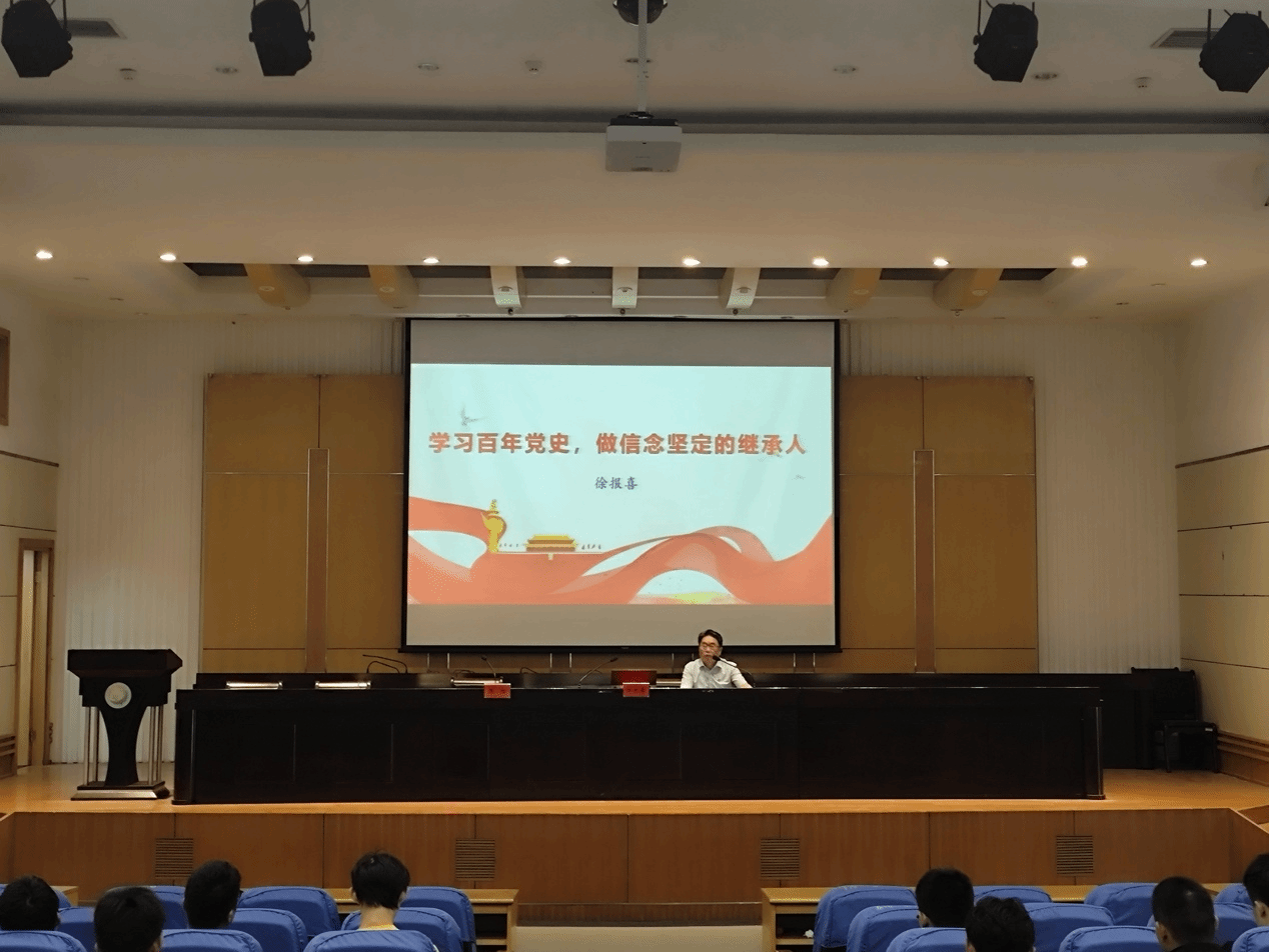 徐报喜以“学习百年党史,做信念坚定的继承人”为题,回顾了中国共产党百年奋斗的光辉历程和历史性贡献,详细介绍了中国共产党成立至今的四个历史时期。他结合自身对党史的学习和心得体会,通过鲜明的观点、精炼的语言,带领全体同学重温党的百年光辉历程,感悟党的初心使命,体悟伟大建党精神,传承党的红色基因。最后,他勉励同学们要赓续共产党人的精神血脉,树立崇高的理想信念,在实践斗争中磨砺自己,做信念坚定的继承人。
